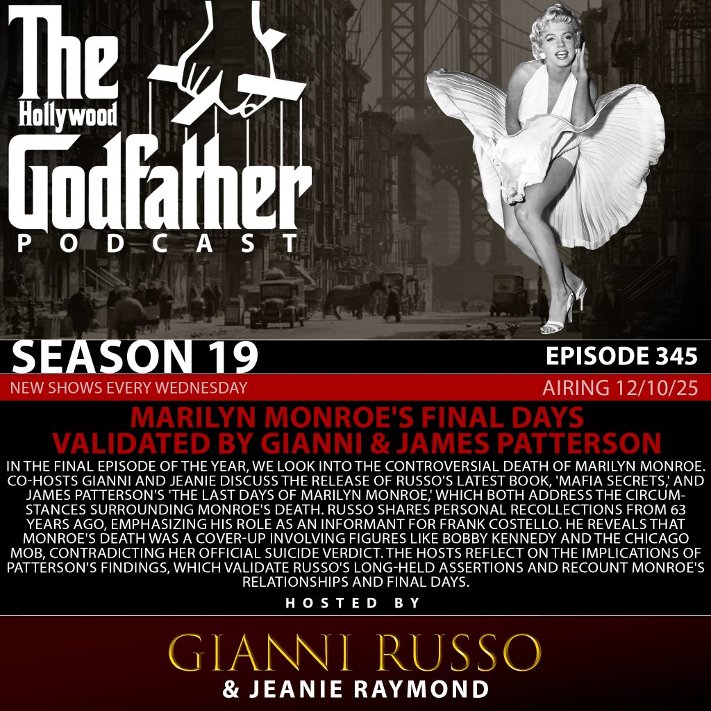 In the final episode of the year, We look into the controversial death of Marilyn Monroe. Co-hosts Gianni and Jeanie discuss the release of Russo’s latest book, ‘Mafia Secrets,’ and James Patterson’s ‘The Last Days of Marilyn Monroe,’ which both address the circumstances surrounding Monroe’s death. Russo shares personal recollections from 63 years ago, emphasizing his role as an informant for Frank Costello. He reveals that Monroe’s death was a cover-up involving figures like Bobby Kennedy and the Chicago mob, contradicting her official suicide verdict. The hosts reflect on the implications of Patterson’s findings, which validate Russo’s long-held assertions and recount Monroe’s relationships and final days. They also share future plans for the podcast and Russo’s upcoming events, while highlighting their determination to have Monroe’s cause of death reclassified from suicide to homicide by her 100th birthday.